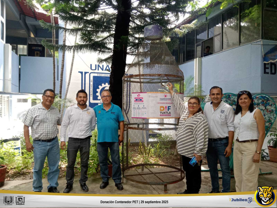 La Facultad de Ciencias Agrícolas, Campus I, de la Benemérita Universidad Autónoma de Chiapas (UNACH) fortaleció su compromiso con la responsabilidad social y el cuidado del medio ambiente al recibir un contenedor de PET el pasado 29 de septiembre, como parte del programa “Transformando plásticos por amor”, impulsado por el DIF Chiapas.