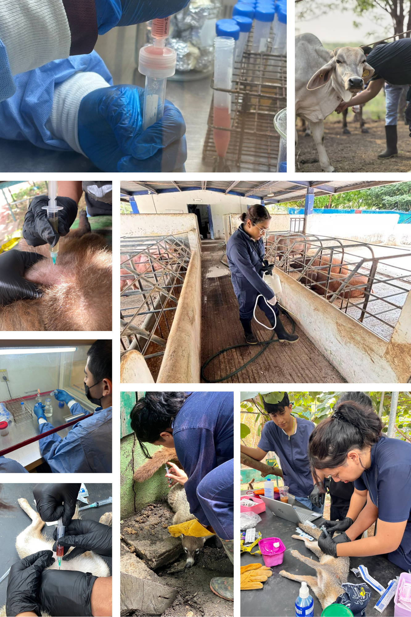 Desde la posta porcina de esta Facultad, la investigadora Brenda Mariana Campos Rodríguez coordina el diseño de un programa de bioseguridad enfocado en el diagnóstico y control del PRRS. De manera paralela, se desarrolla un estudio para identificar la resistencia del Rhipicephalus microplus a garrapaticidas químicos y proponer un esquema de control adaptado a los sistemas ganaderos locales, bajo la guía del maestro Guillermo Salinas Castañón y del doctor Mario Hidalgo Ruíz.