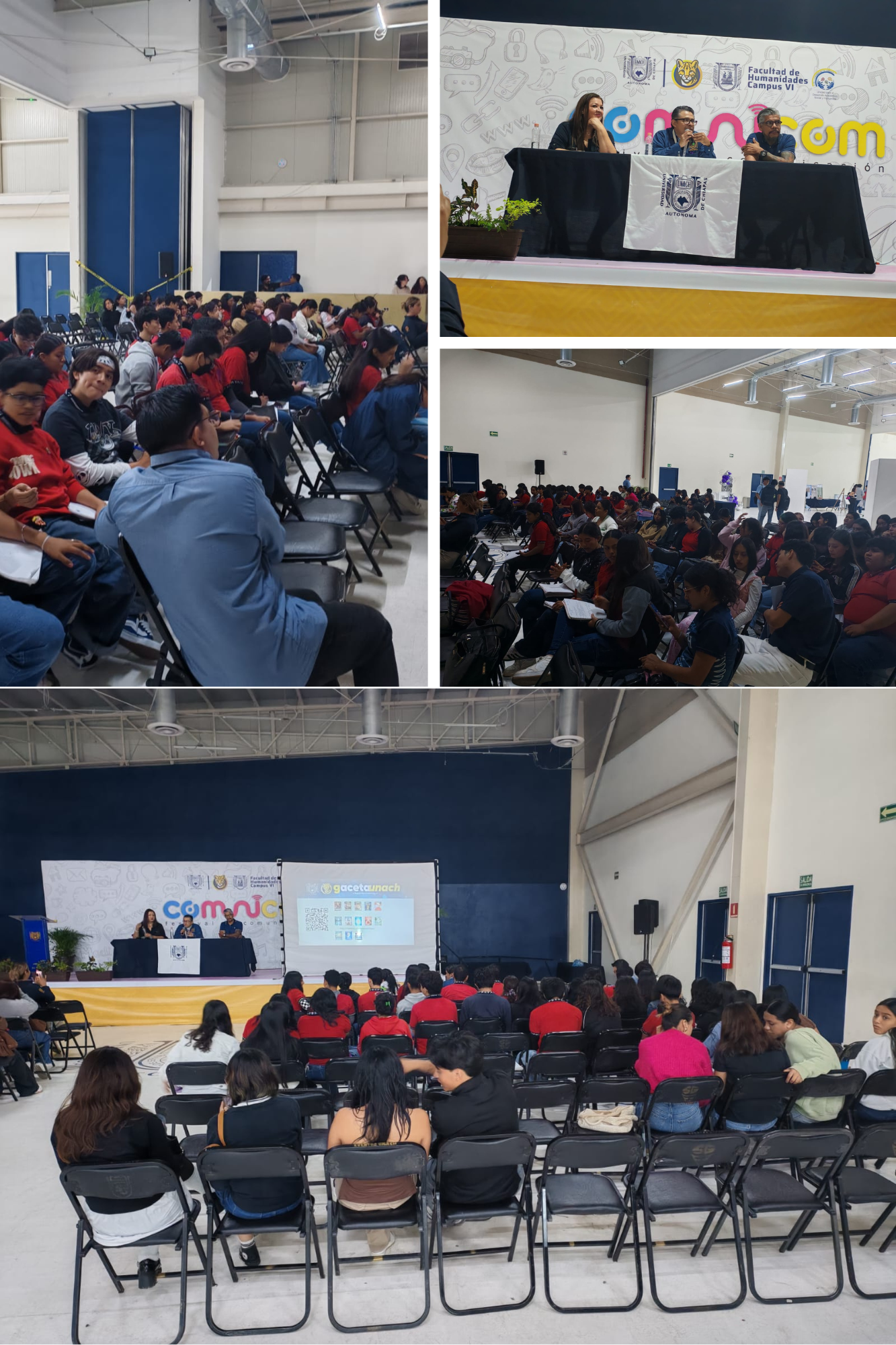 En el marco del Festival Comunicom, organizado por alumnos de la Licenciatura en Ciencias de la Comunicación de la Facultad de Humanidades de la Benemérita Universidad Autónoma de Chiapas (UNACH), el equipo creativo de Gaceta UNACH expuso los alcances del medio, su origen y destino junto al desarrollo de la comunidad universitaria.